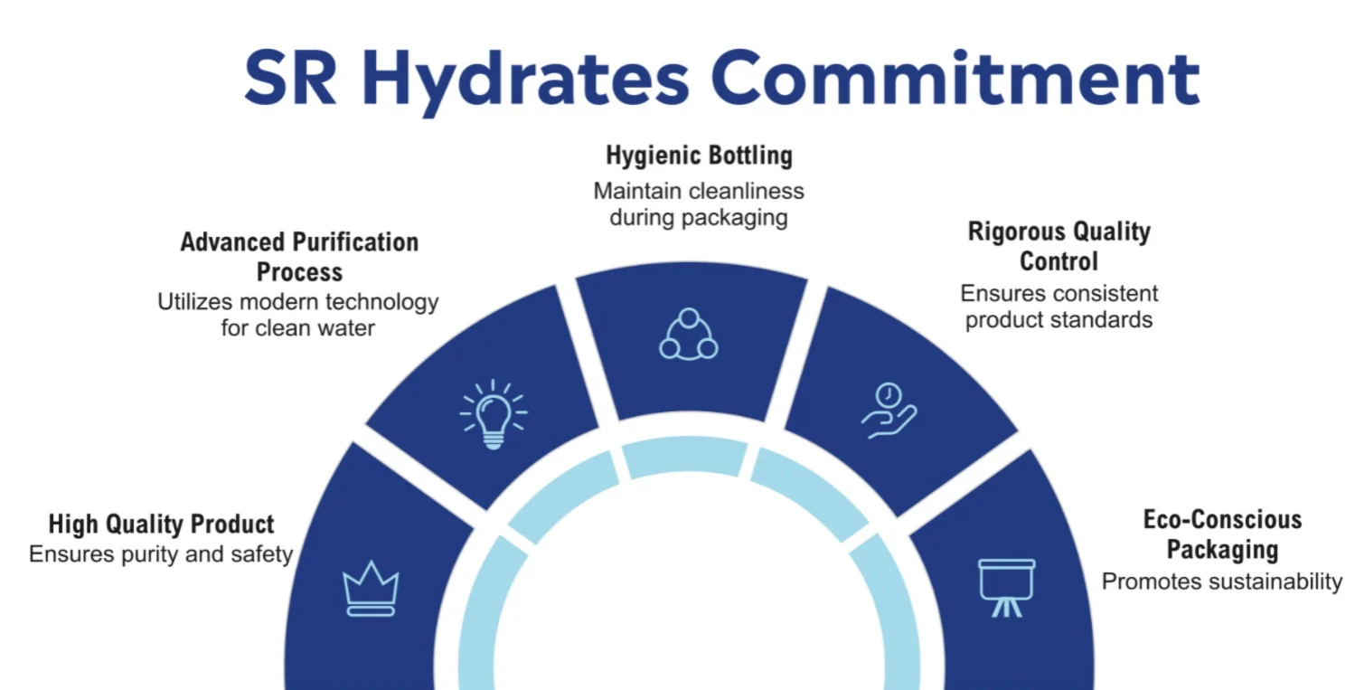 SR Hydrates is a trusted name in premium packaged drinking water, dedicated to delivering purity, safety, and refreshing hydration. We follow strict quality standards at every stage, from sourcing and purification to packaging, ensuring that every bottle meets the highest levels of hygiene and taste. Our water is carefully processed and enriched with essential minerals to provide a balanced and refreshing drinking experience.